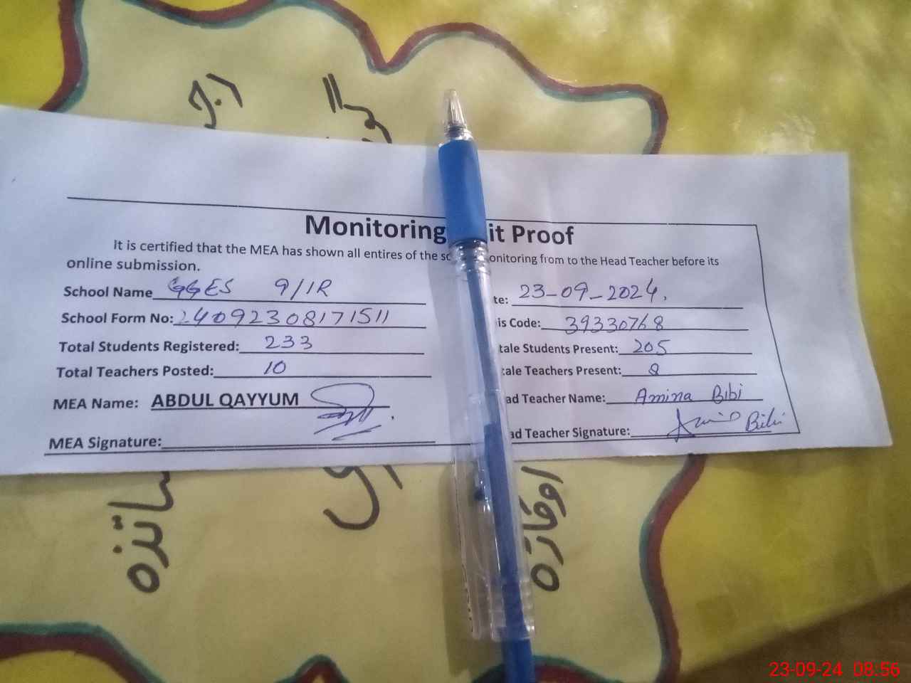 | EMIS Code: 39330768 | Name of School: GGES CHAK NO. 9/1-R | |||