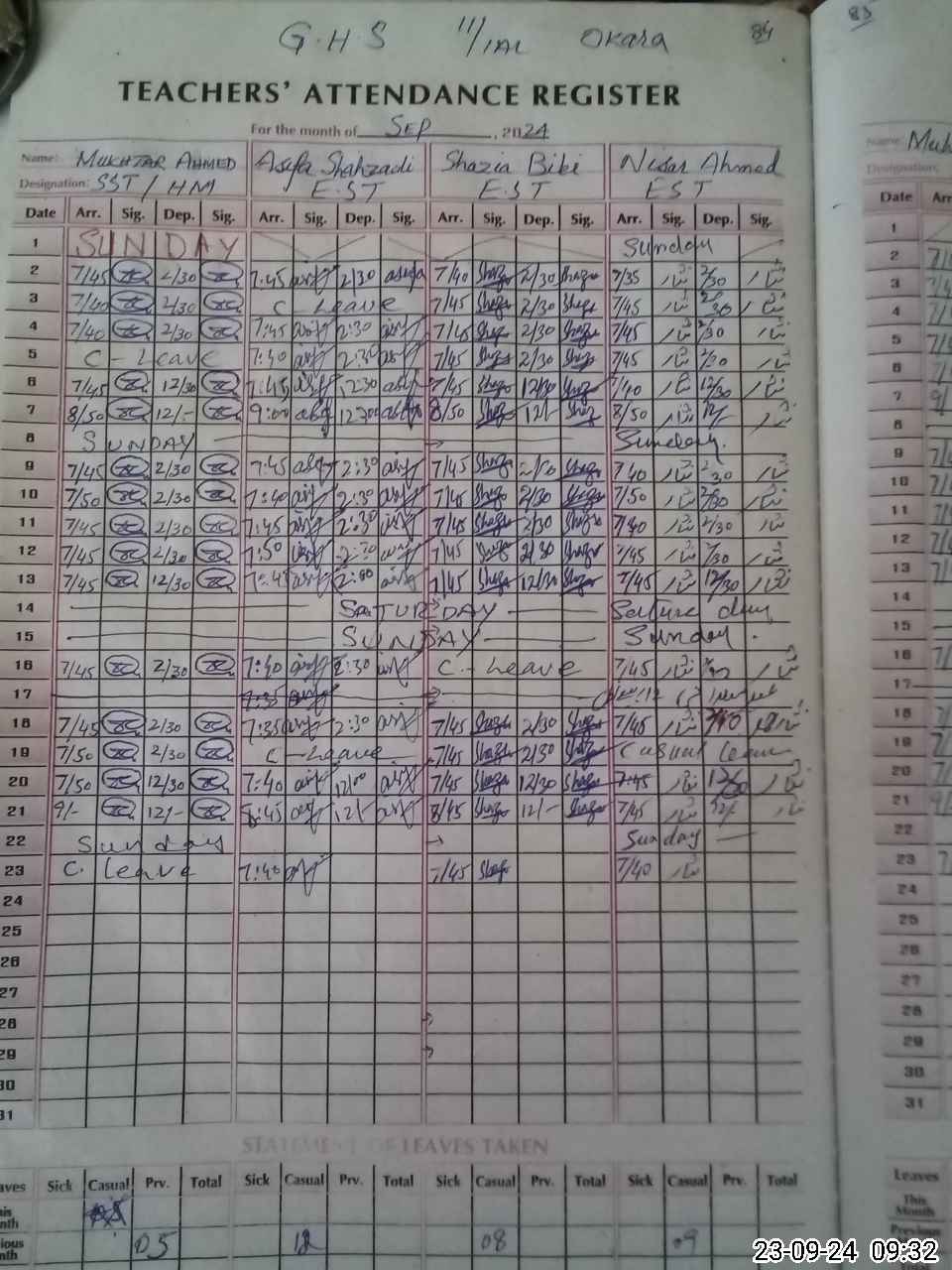 | Name: Mu**** Ah**** Designation: (School Headmaster's/Headmistress's) S. S T General Phone/Cell Number: 03**** |