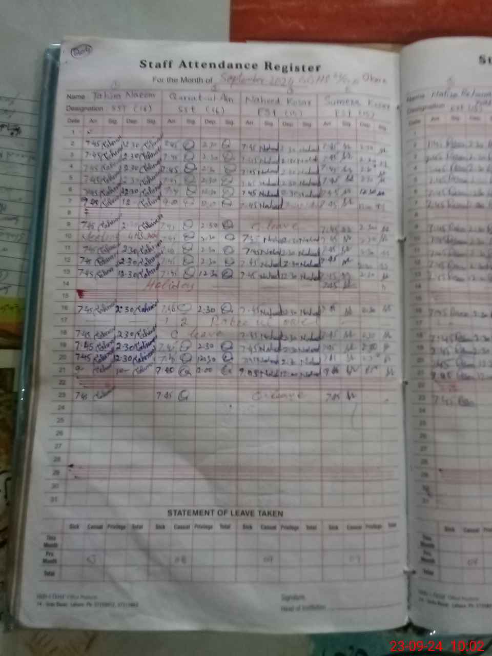 | Leave | Duty | Absent | Maternity | Medical | Ex- Pak |