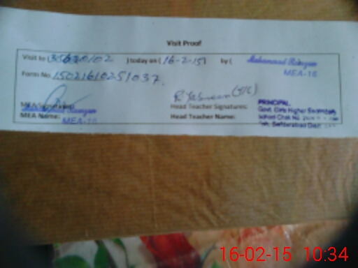 | Attendance Register | Head Teacher | MEA with School | Visit Proof |