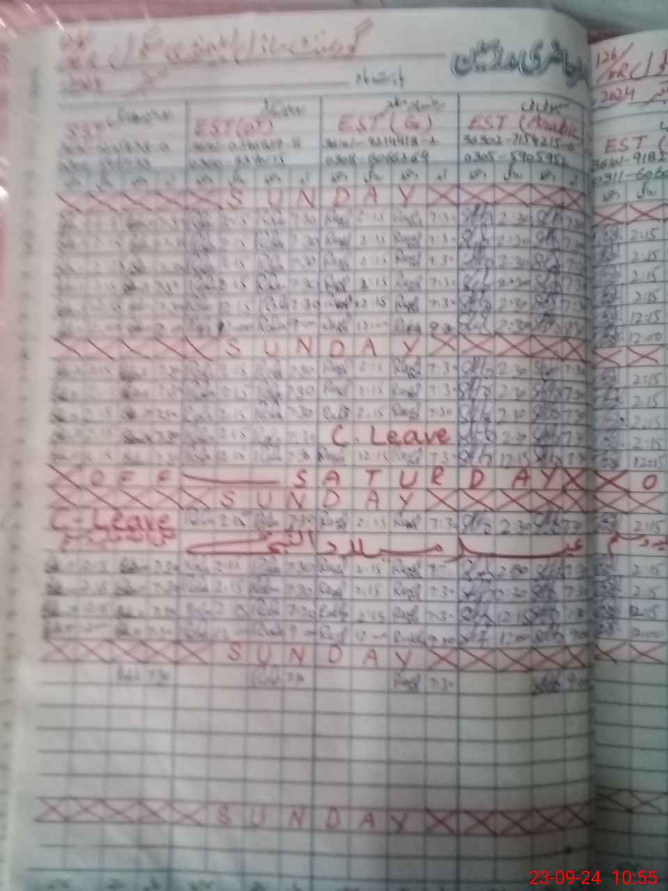 | Leave | Duty | Absent | Maternity | Medical | Ex- Pak |