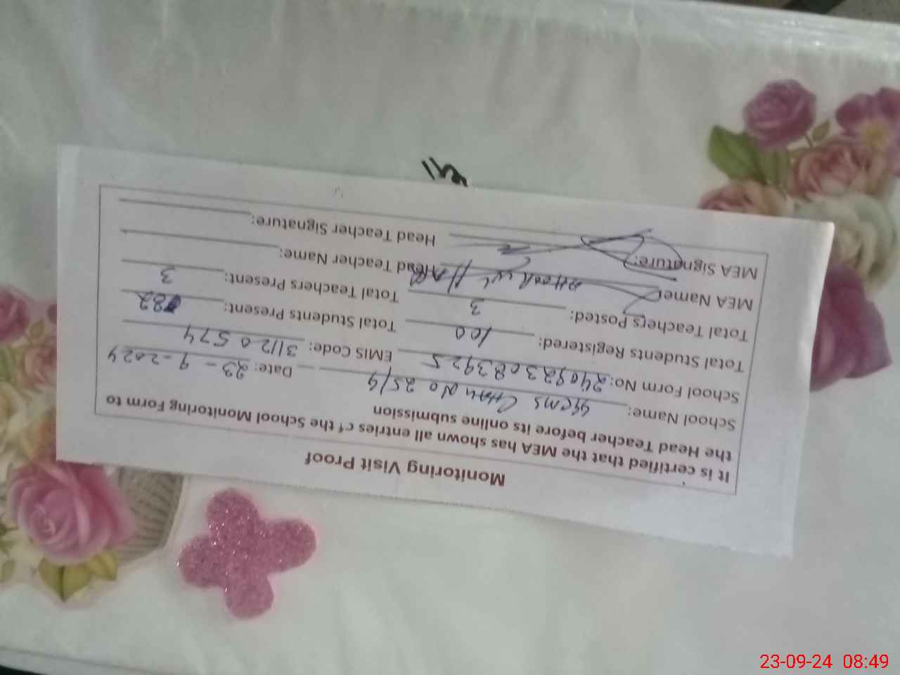 | Certified that this School was Inspected by the Undersigned MEA/DMO Today and the Information Stated Above is as Per Record. | |||||