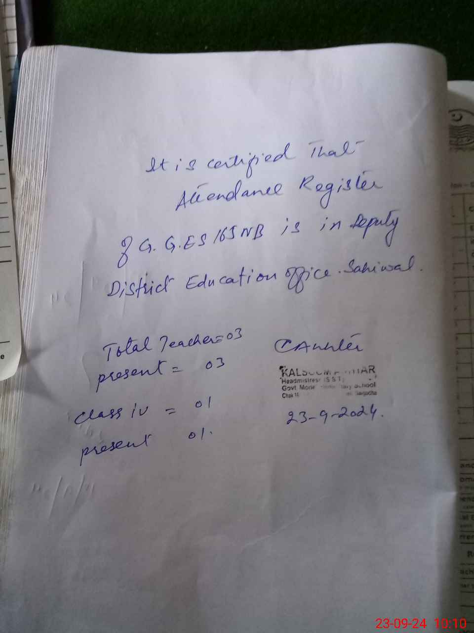 | Name: KA**** AK**** Designation: (School Headmaster's/Headmistress's) SST(Gen) Phone/Cell Number: 03**** |