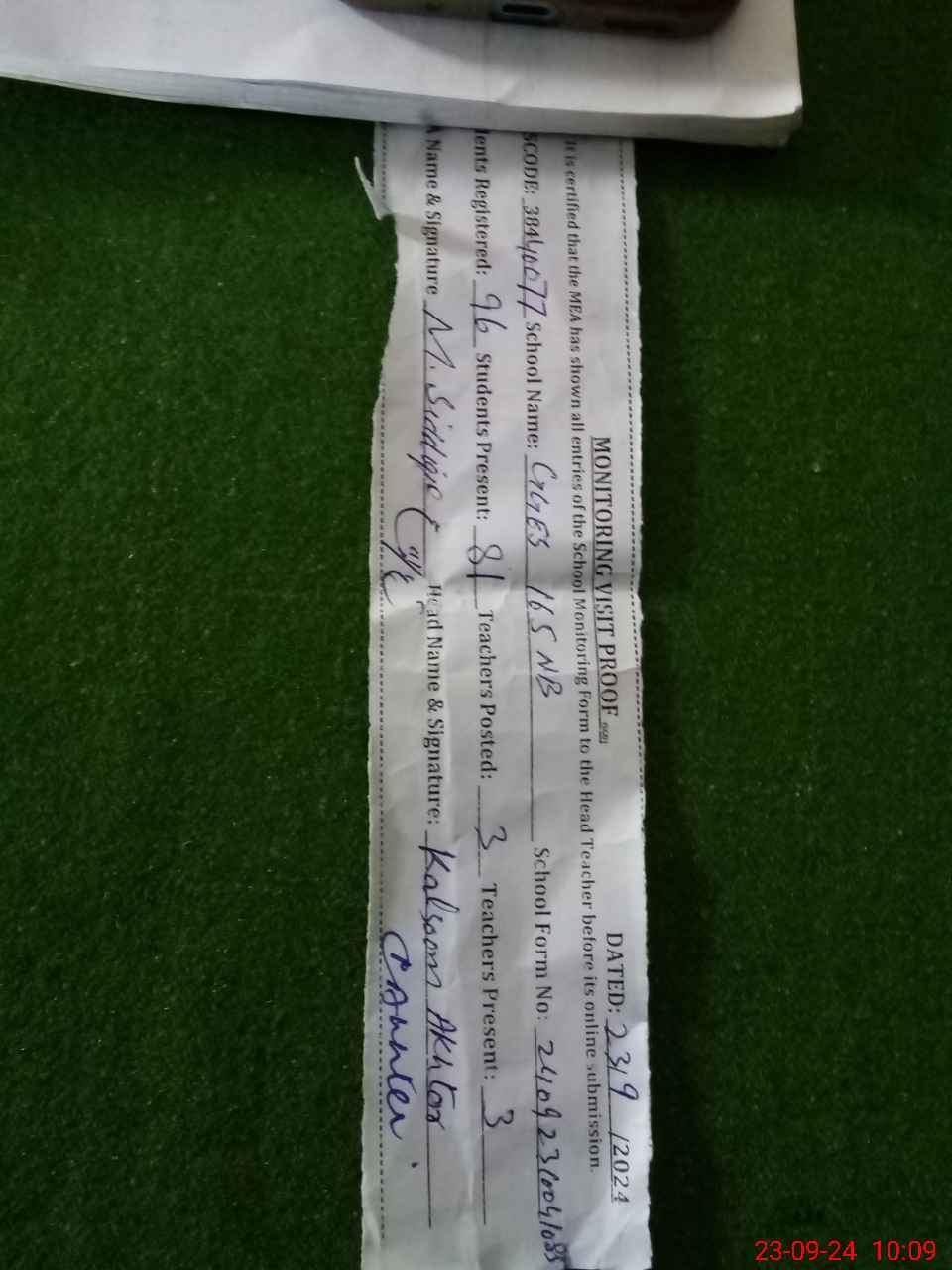 | Monitoring Date: 23-09-2024 | Start Time: 23-09-2024 09:33 AM | End Time: 23-09-2024 10:14 AM | Name of MEA: MU**** SI**** | |