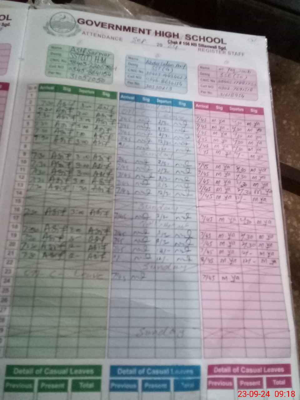 | Name: AS**** SA**** Designation: (School Headmaster's/Headmistress's) S.S.T.(CS) Phone/Cell Number: 03**** 86**** |