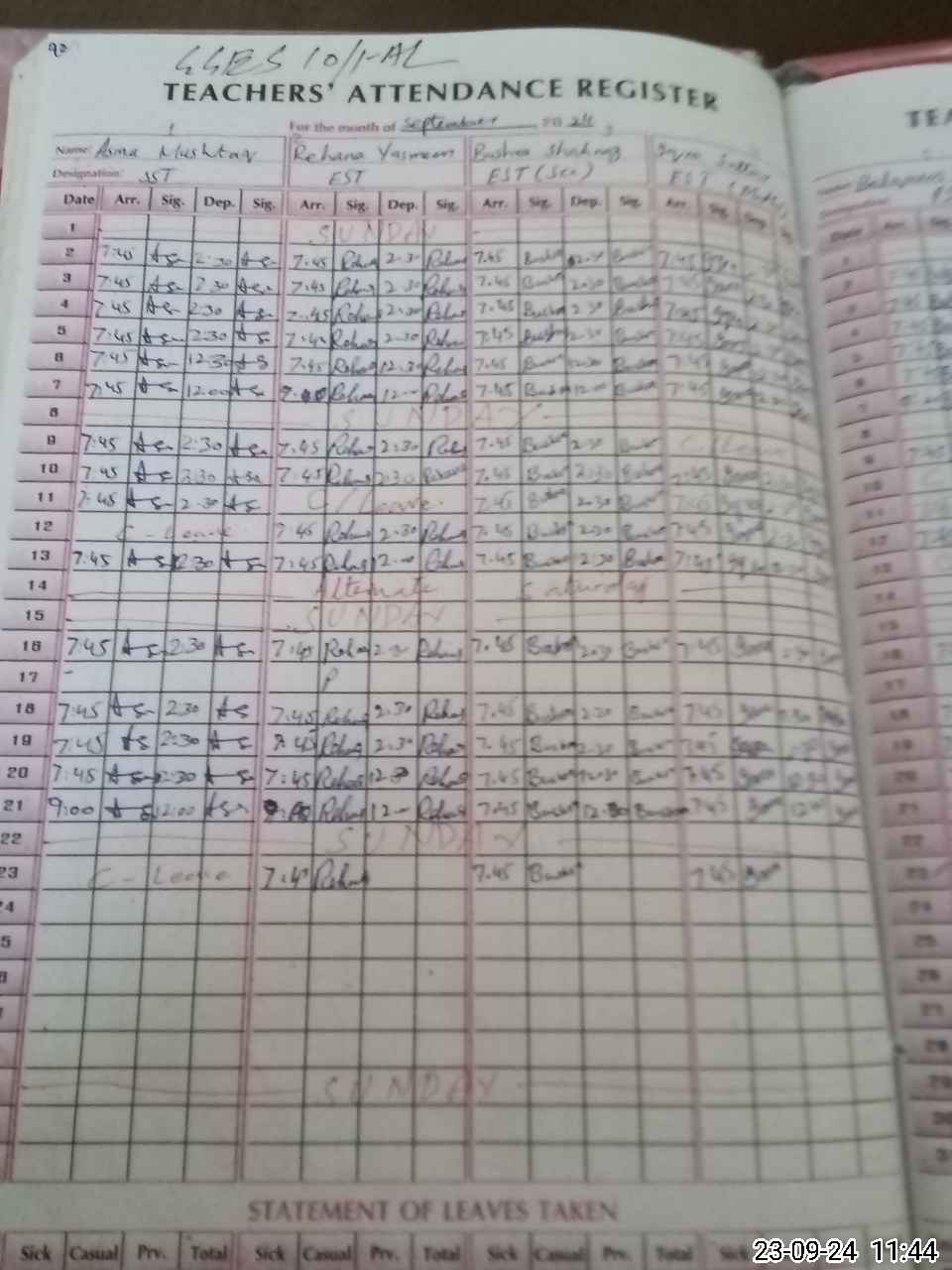| 35**** | Ba**** Ak**** | PST | Regular | 2 | 0 | 0 | 0 | 0 | 0 | 0 | 0 | 2 | Casual |