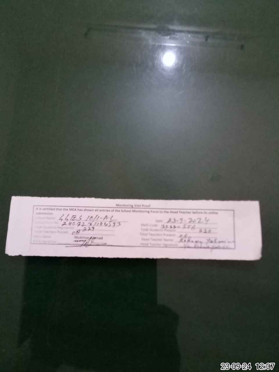 | Certified that this School was Inspected by the Undersigned MEA/DMO Today and the Information Stated Above is as Per Record. | |||||