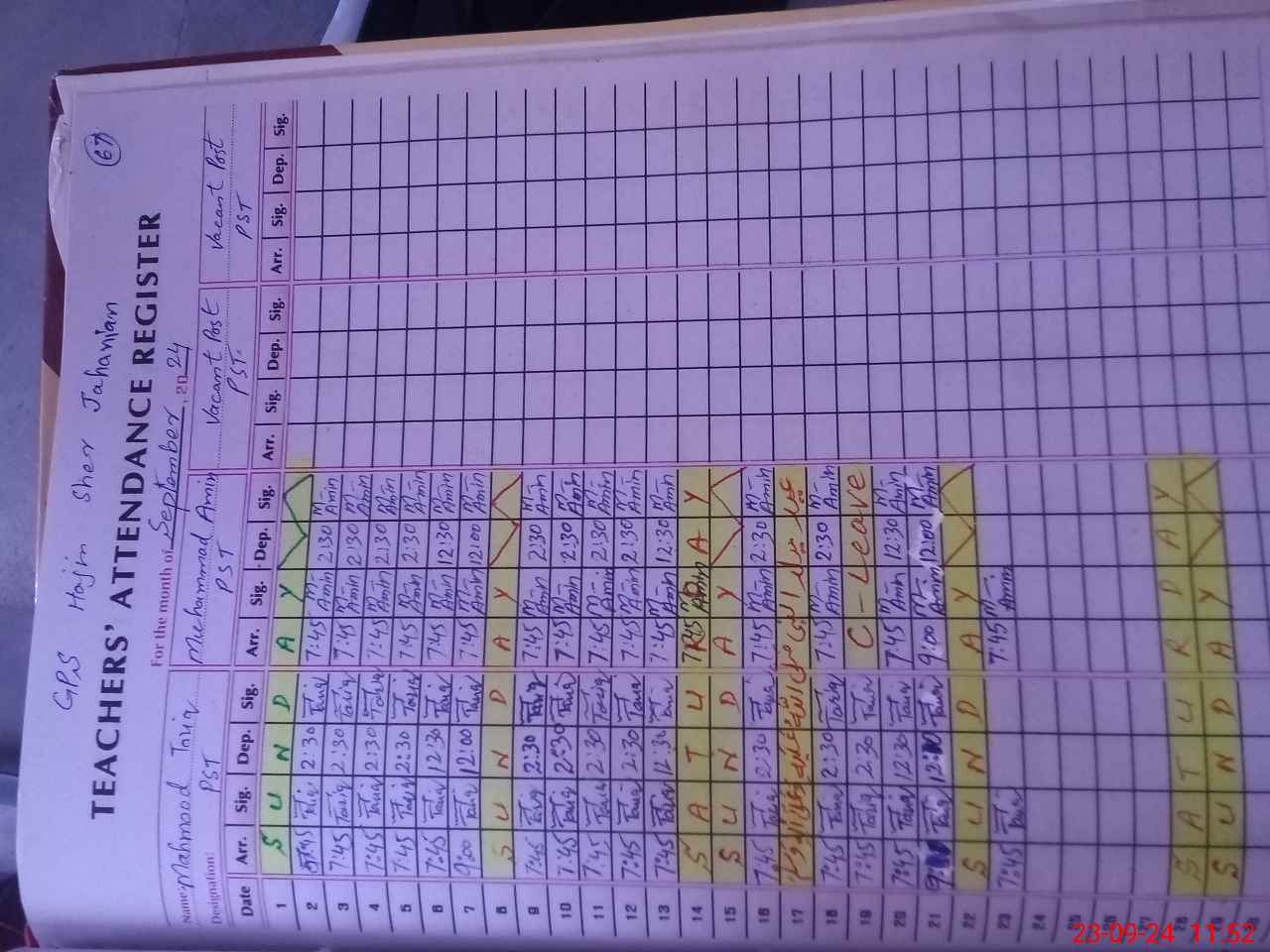 | Name: Sh**** Ah**** Designation: (School Headmaster's/Headmistress's) Pst (Arts) Phone/Cell Number: 03**** |