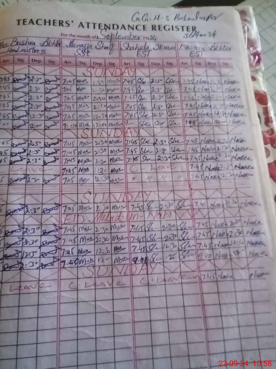 | Name: Bu**** Ak**** Designation: (School Headmaster's/Headmistress's) HEAD MISTRESS Phone/Cell Number: 03**** |