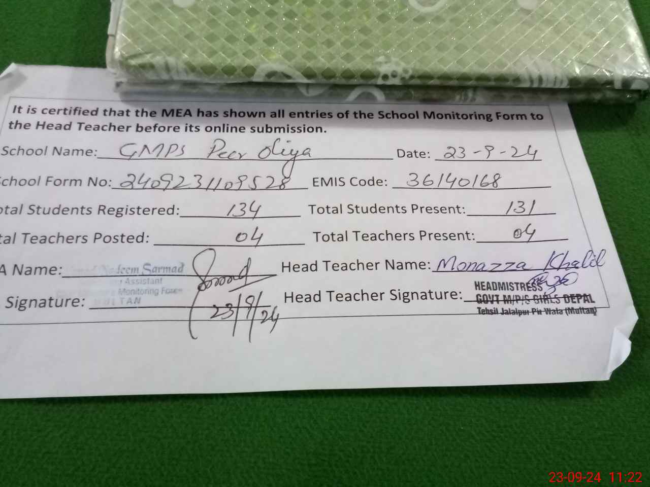 | EMIS Code: 36140168 | Name of School: GMPS PEER OLIYA (DEEPAL) | |||
