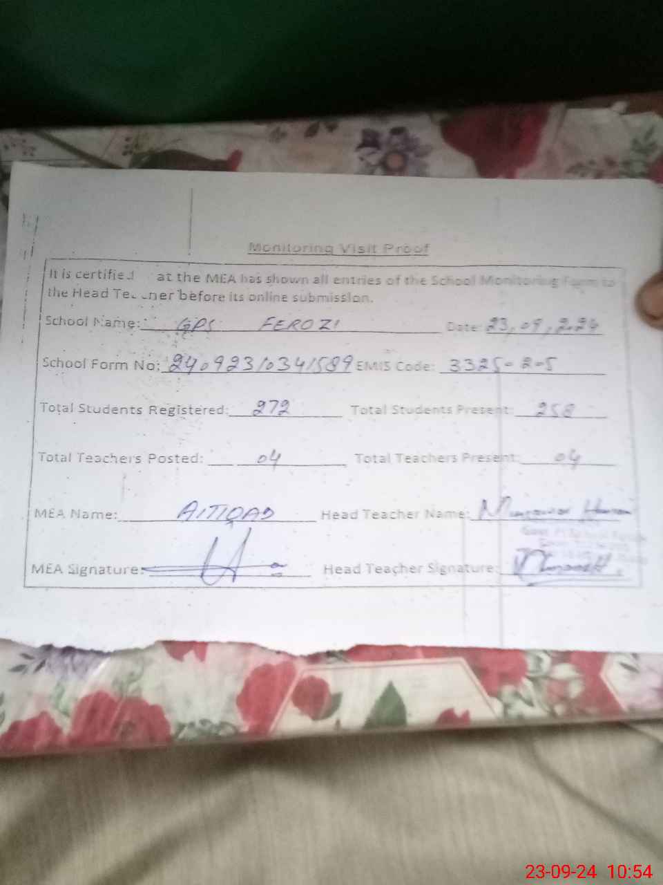 | EMIS Code: 33250205 | Name of School: GPS FEROZI | |||