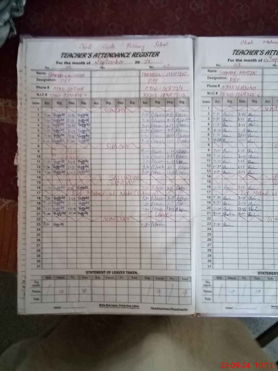 | Name: Ta**** Designation: (School Headmaster's/Headmistress's) PST Phone/Cell Number: 03**** |