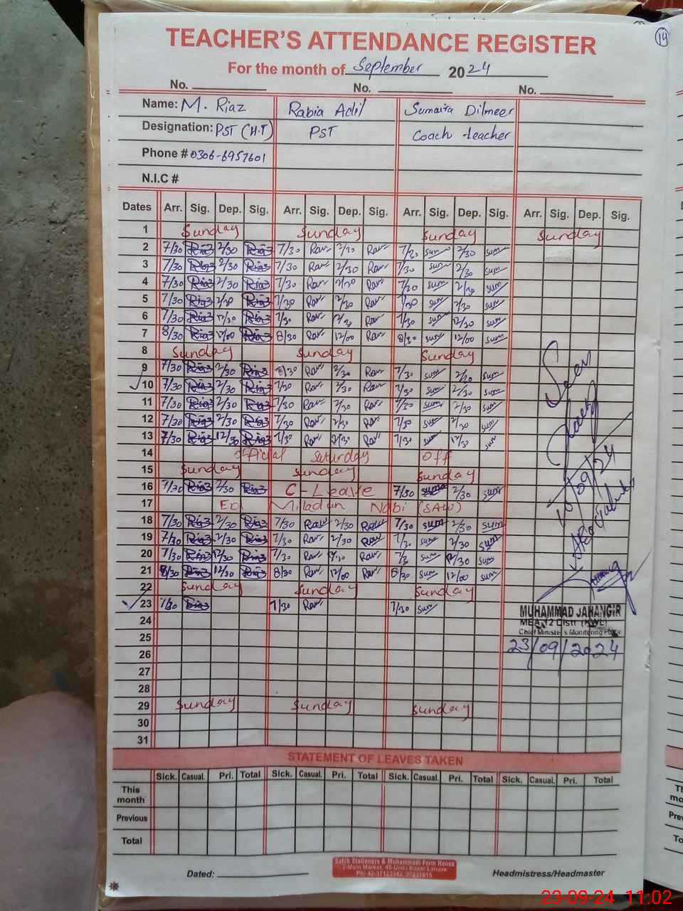 | Name: MU**** RI**** Designation: (School Headmaster's/Headmistress's) PST Phone/Cell Number: 03**** |