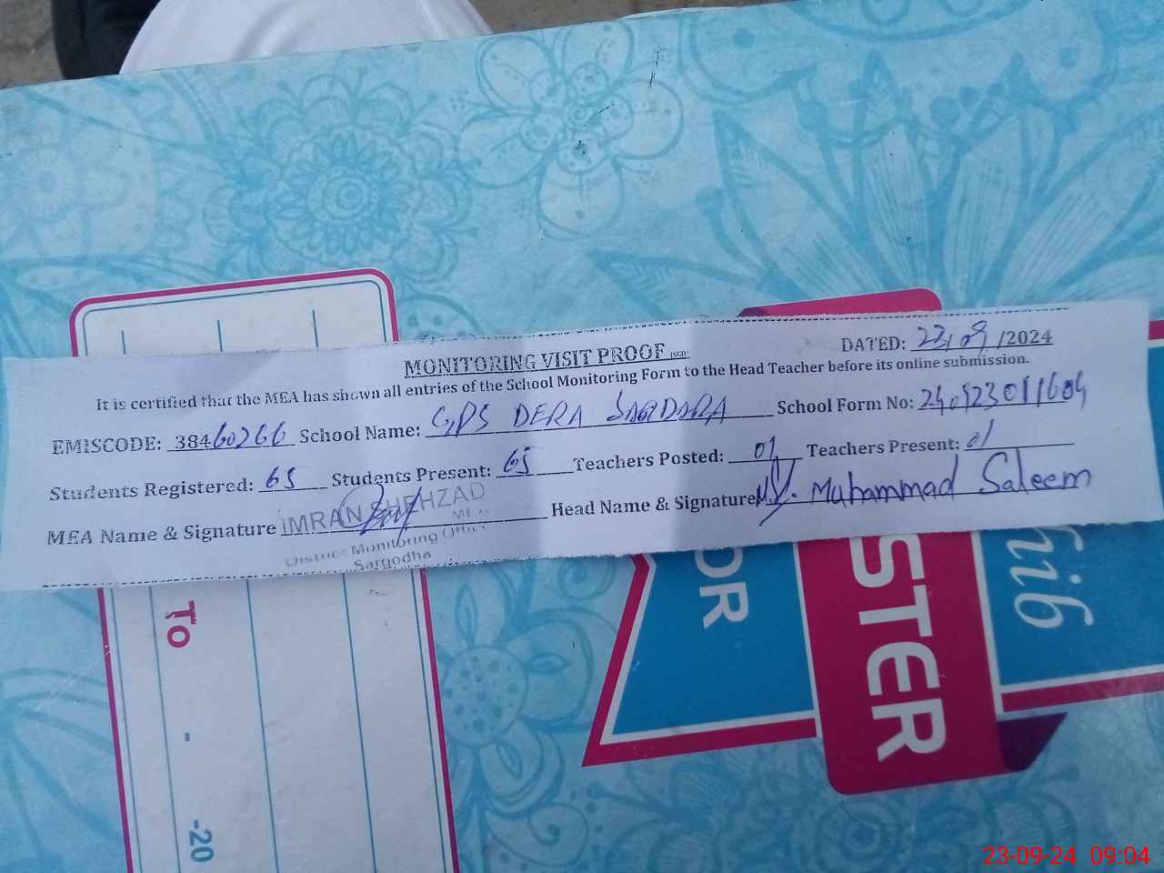 | EMIS Code: 38460266 | Name of School: GPS DERA SARDARA | |||