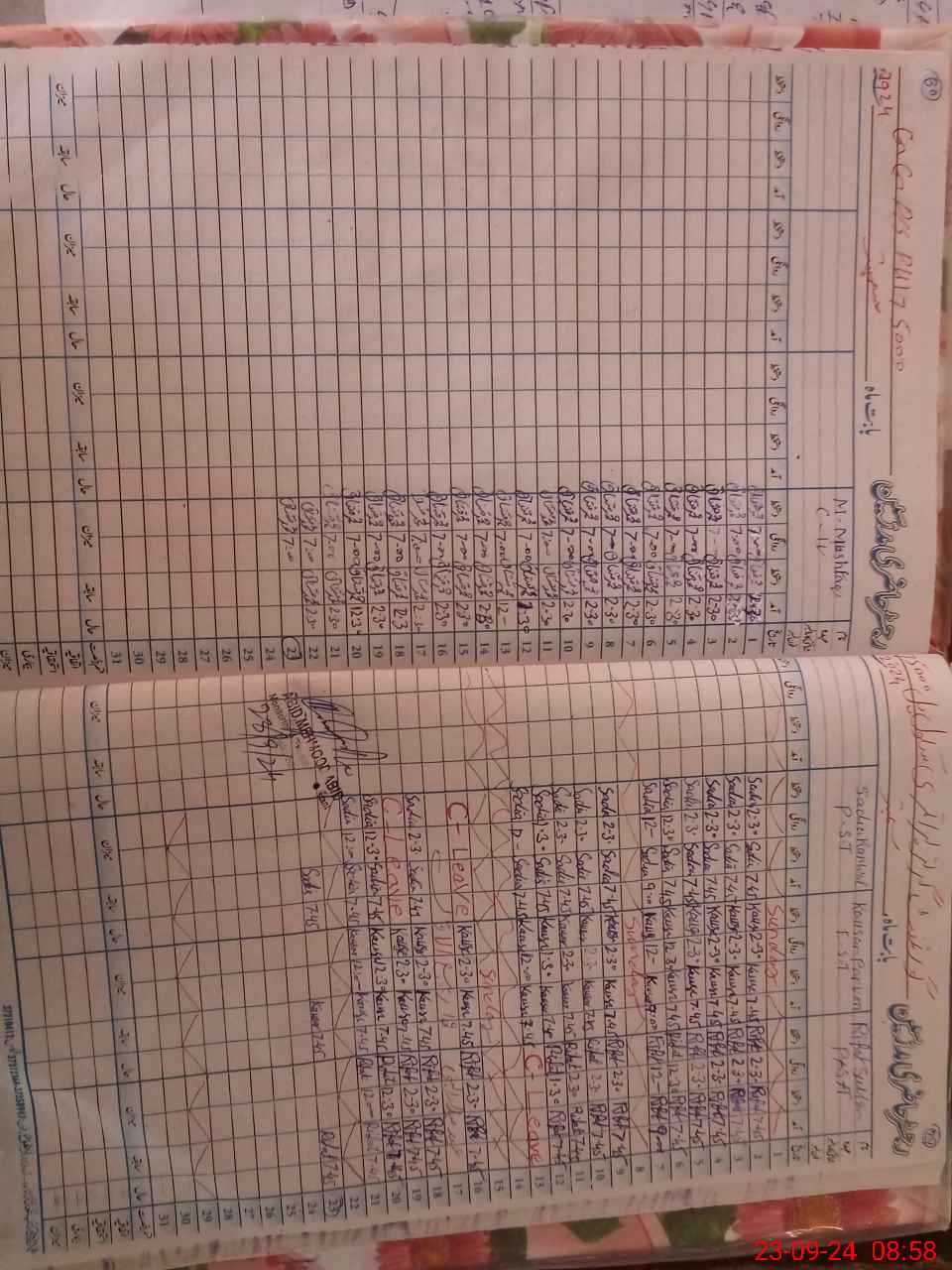 | CNIC | Full Name | Designation | R/C | Absence During Last Calender Month |