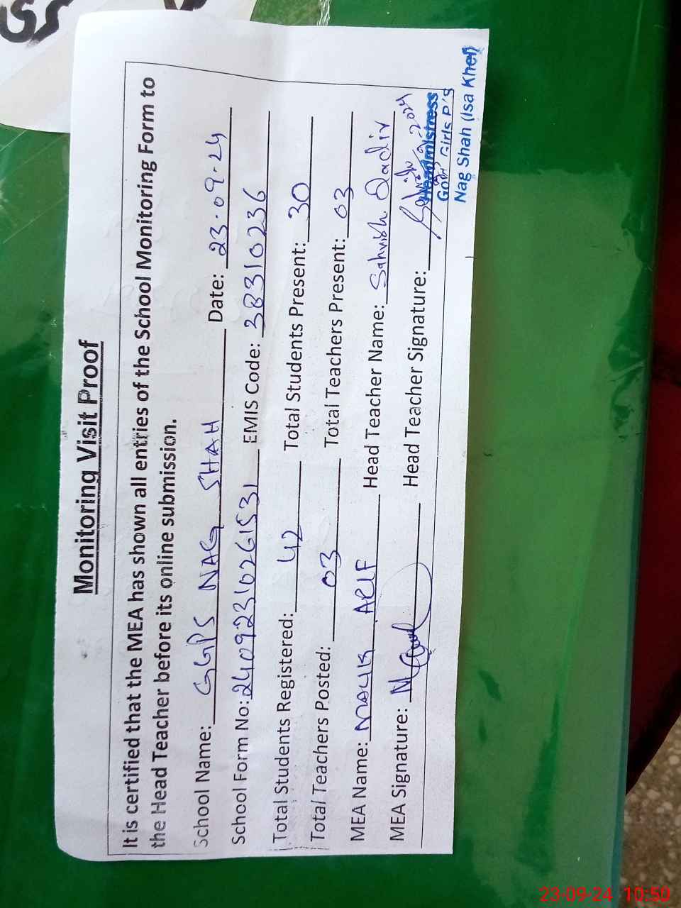 | EMIS Code: 38310236 | Name of School: GGPS NAG SHAH | |||