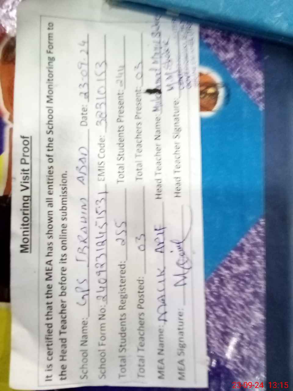 | Certified that this School was Inspected by the Undersigned MEA/DMO Today and the Information Stated Above is as Per Record. | |||||