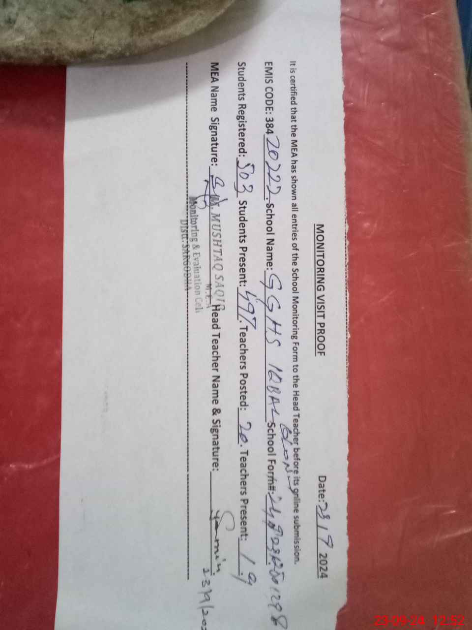 | EMIS Code: 38420222 | Name of School: GGHS IQBAL COLONY SARGODHA | |||