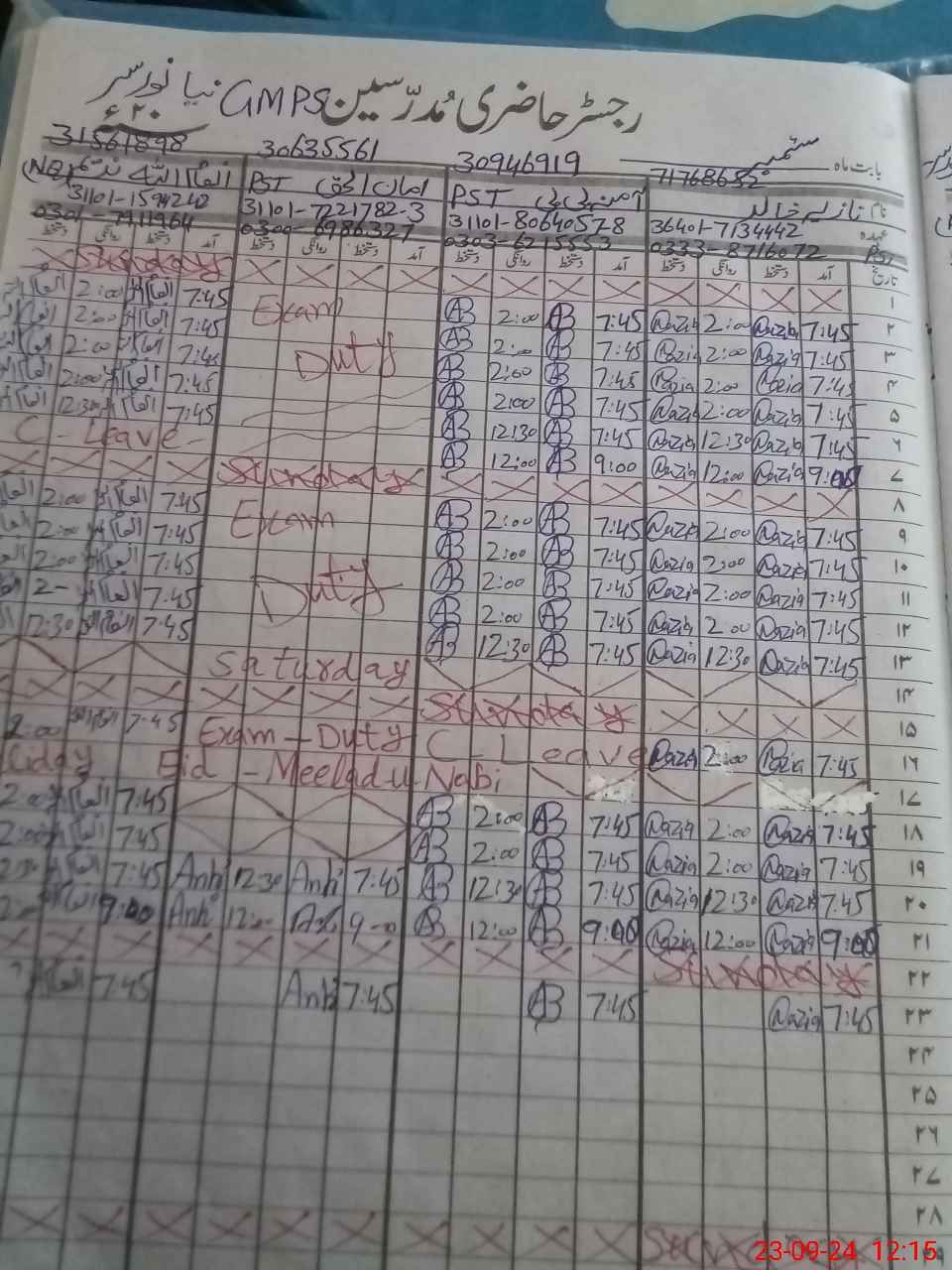 | Name: NA**** KH**** Designation: (School Headmaster's/Headmistress's) PST Phone/Cell Number: 03**** |