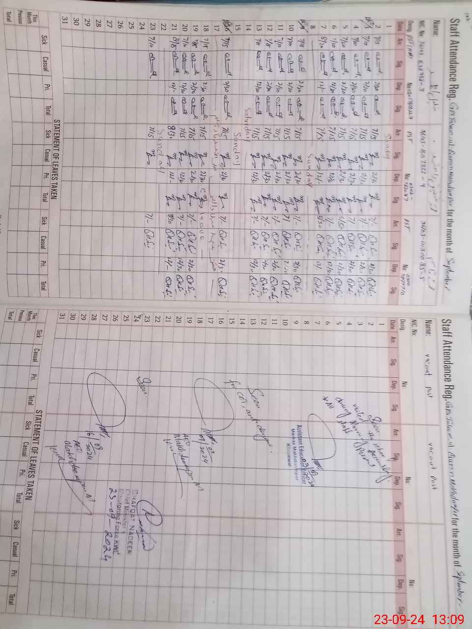| CNIC | Full Name | Designation | R/C | Absence During Last Calender Month |