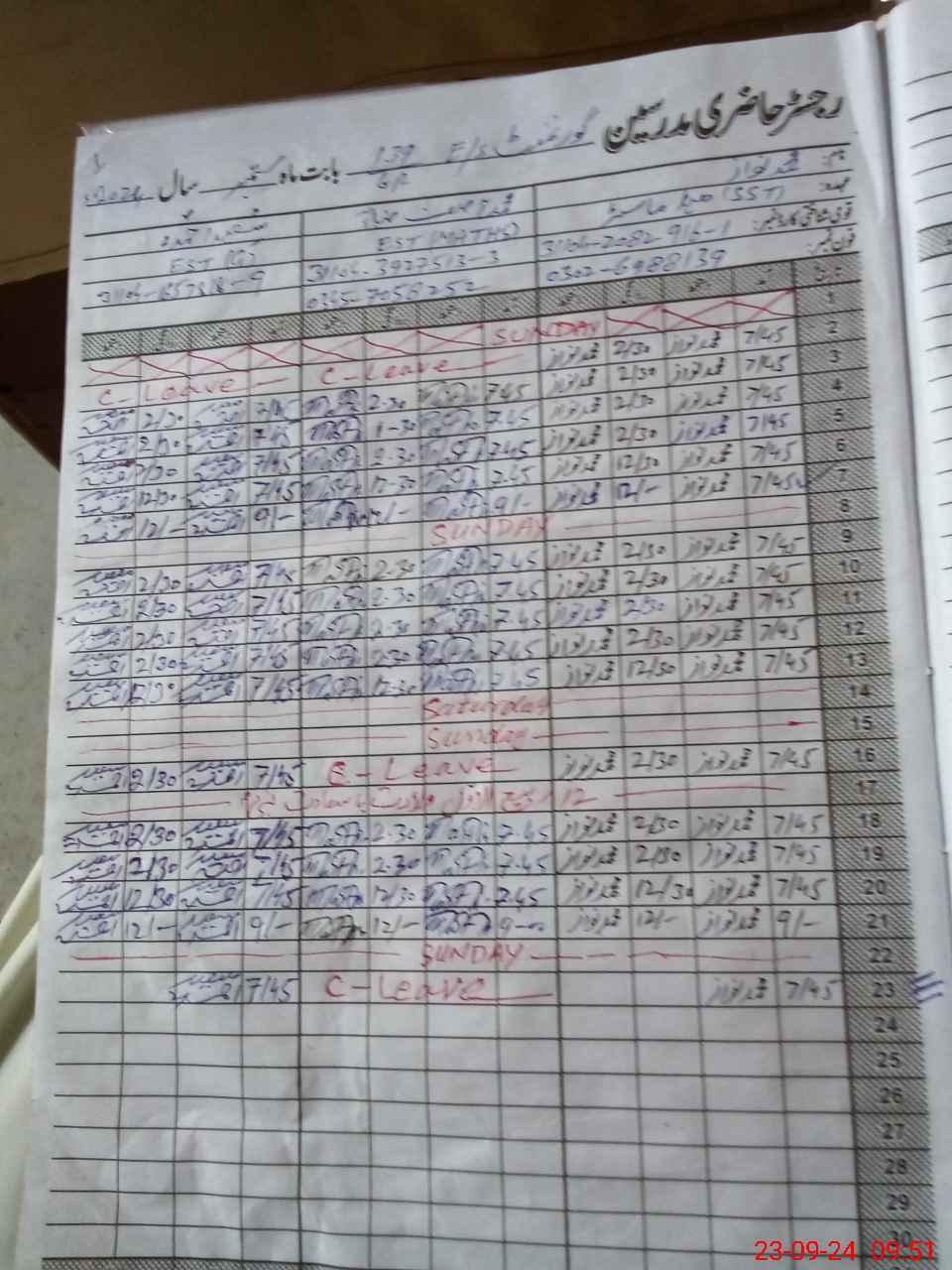 | CNIC | Full Name | Designation | R/C | Absence During Last Calender Month |