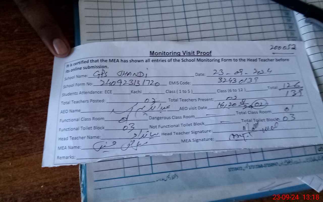 | EMIS Code: 32430139 | Name of School: GPS JHANDI | |||