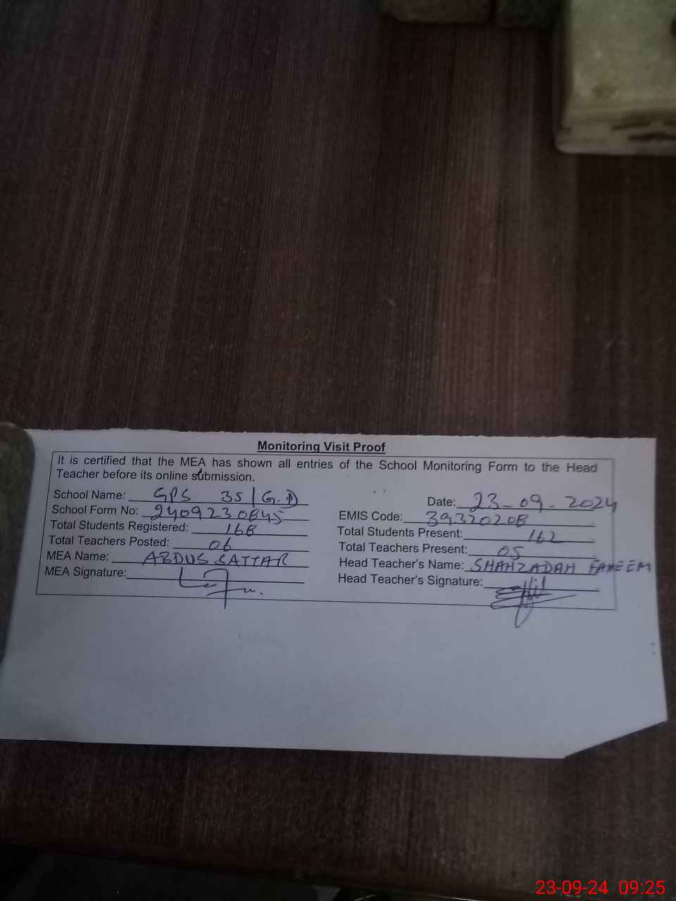 | EMIS Code: 39320208 | Name of School: GPS CHAK 35/G.D | |||