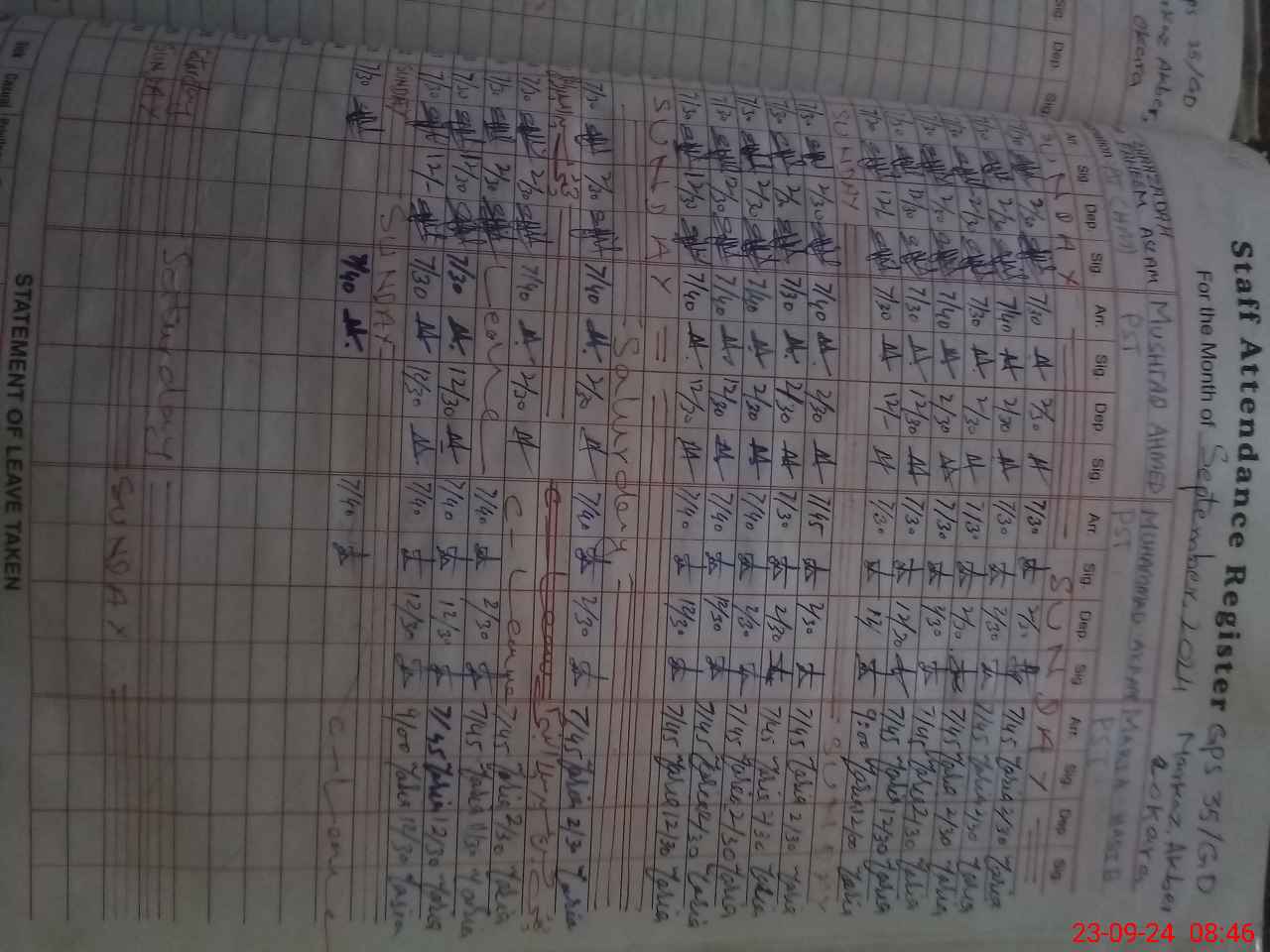 | Monitoring Date: 23-09-2024 | Start Time: 23-09-2024 08:45 AM | End Time: 23-09-2024 09:26 AM | Name of MEA: AB**** SA**** | |
