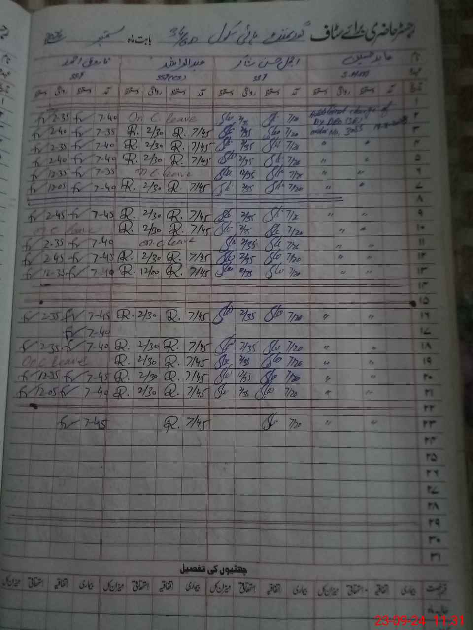 | CNIC | Full Name | Designation | R/C | Absence During Last Calender Month |