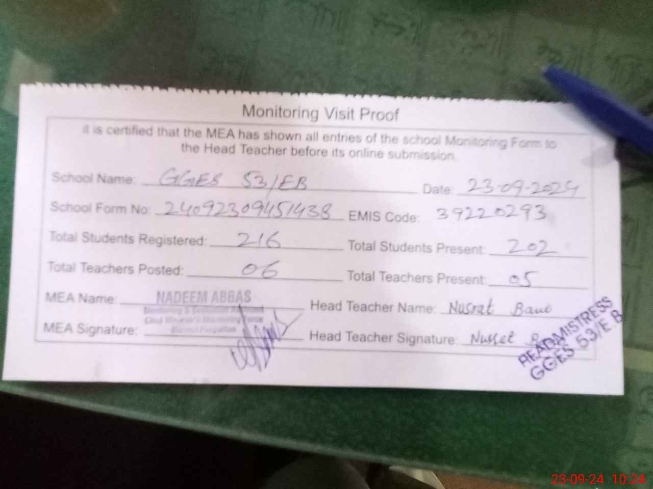 | EMIS Code: 39220293 | Name of School: GGES 53 EB | |||