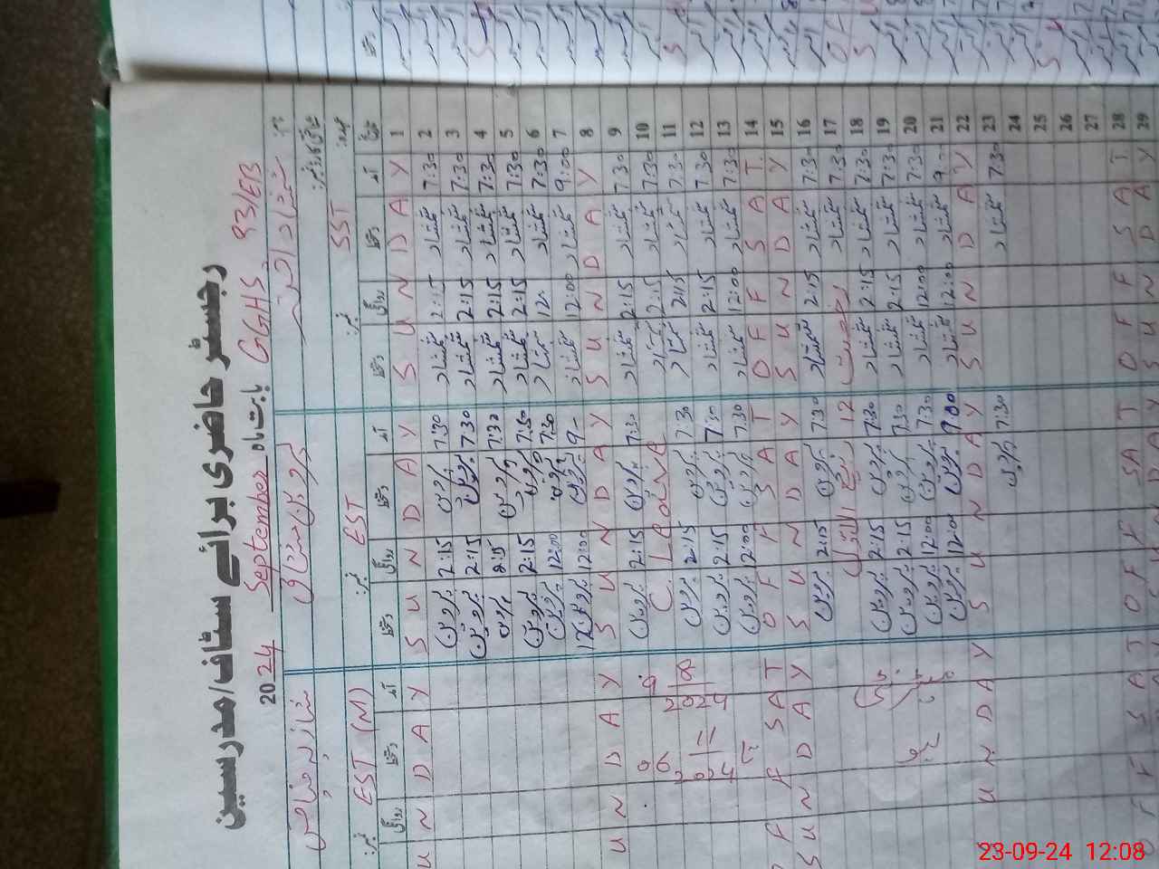 | Name: SH**** AK**** Designation: (School Headmaster's/Headmistress's) S.S.T.(GENERAL) Phone/Cell Number: 03**** |