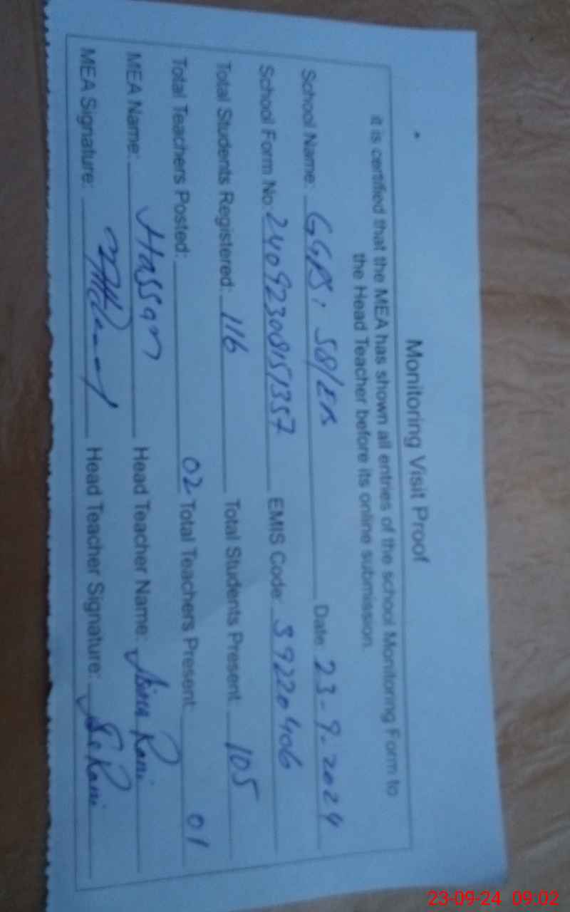 | EMIS Code: 39220406 | Name of School: GGPS 58 EB PO 58 EB | |||