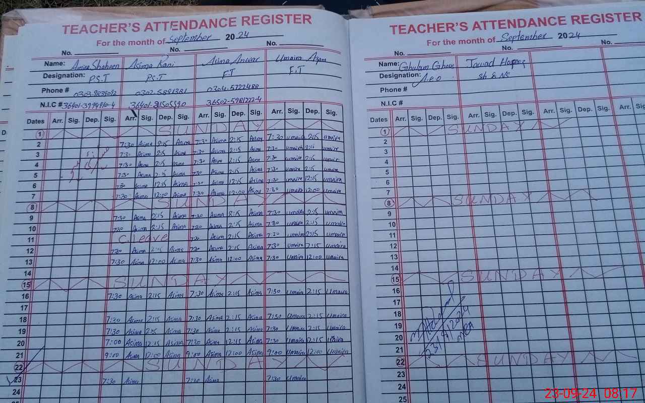 | Name: AM**** SH**** Designation: (School Headmaster's/Headmistress's) PST Phone/Cell Number: 03**** |