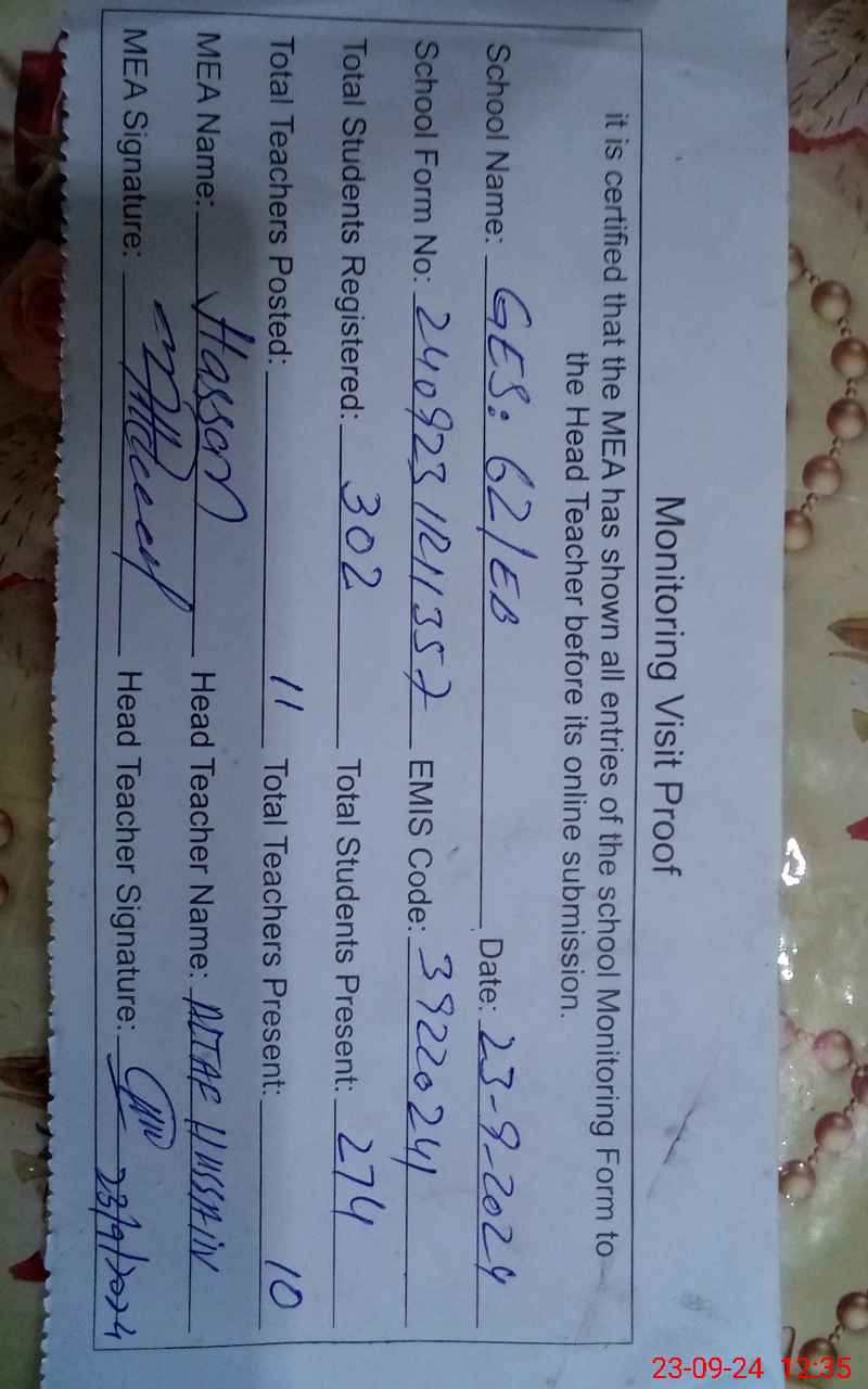 | EMIS Code: 39220241 | Name of School: GES 62 EB | |||