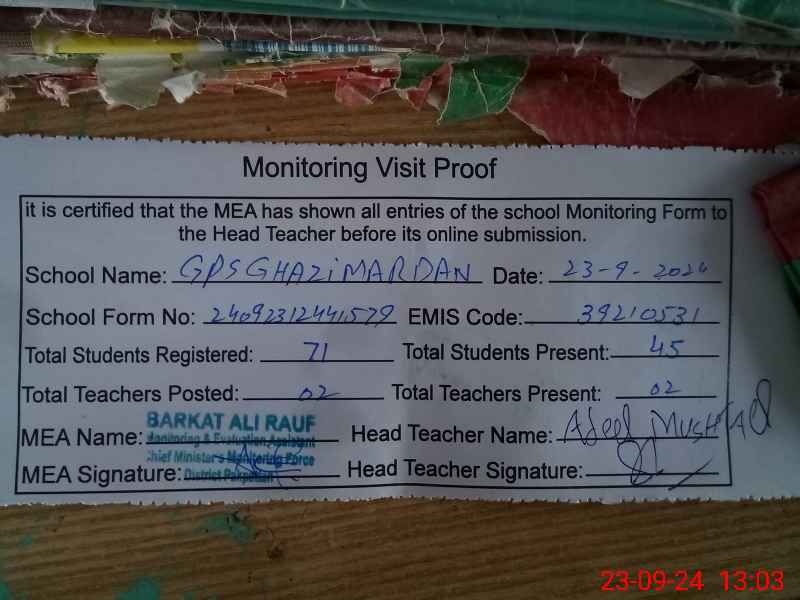 | EMIS Code: 39210531 | Name of School: GPS GHAZI MARDAN P/O CHAK BEDI | |||