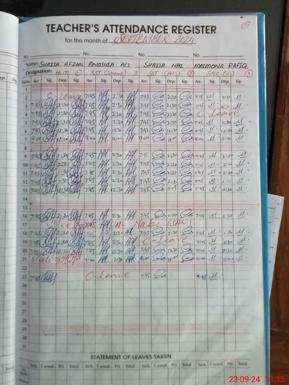 | Leave | Duty | Absent | Maternity | Medical | Ex- Pak |