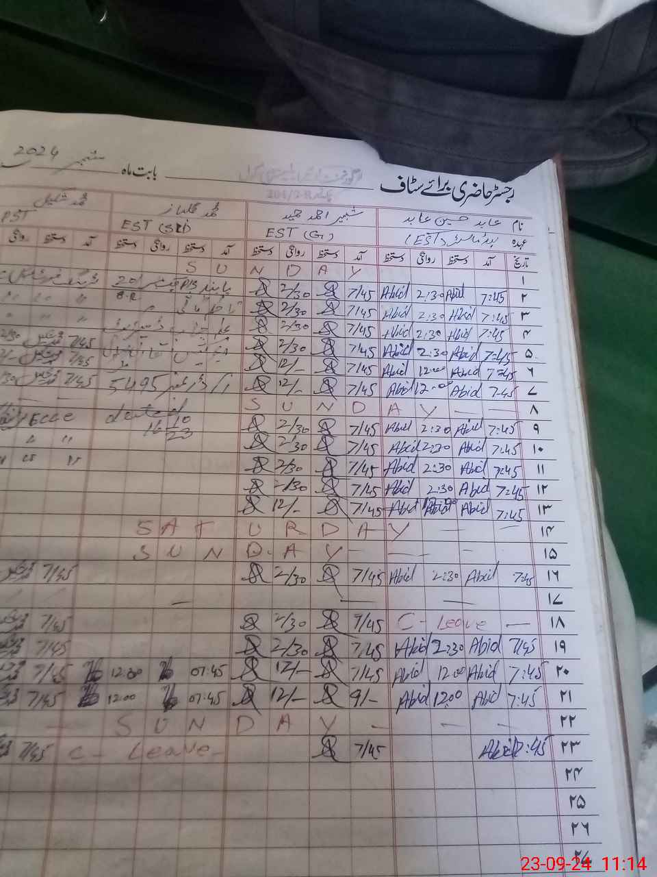 | CNIC | Full Name | Designation | R/C | Absence During Last Calender Month |