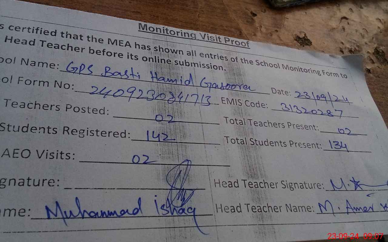 | EMIS Code: 31320287 | Name of School: GPS BASTI HAMID GASOORA | |||