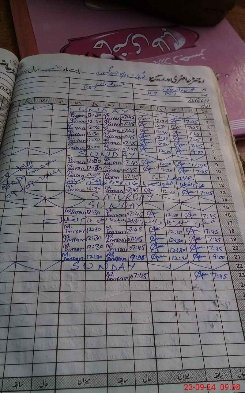 | CNIC | Full Name | Designation | R/C | Absence During Last Calender Month |