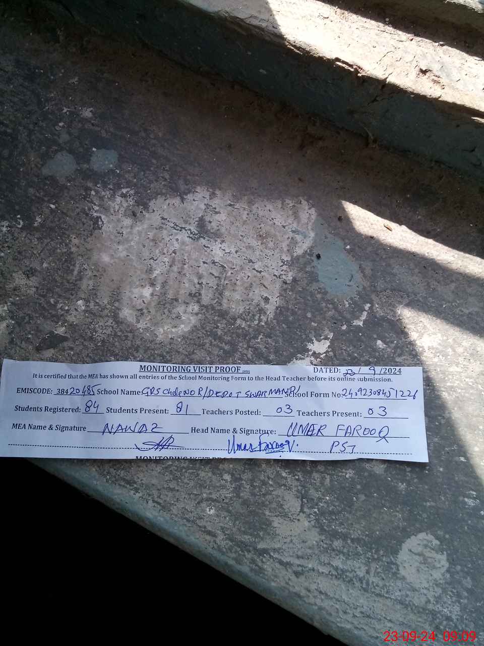 | Attendance Register | Head Teacher | MEA with School | Visit Proof |