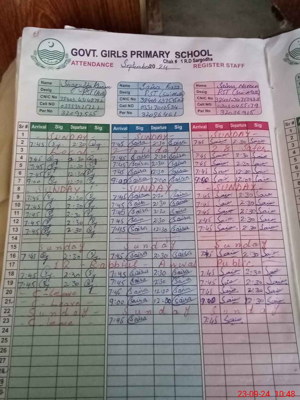 | District: SARGODHA | Tehsil: SARGODHA | Markaz: SATELLITE TOWN - FEMALE | Level: Primary | |