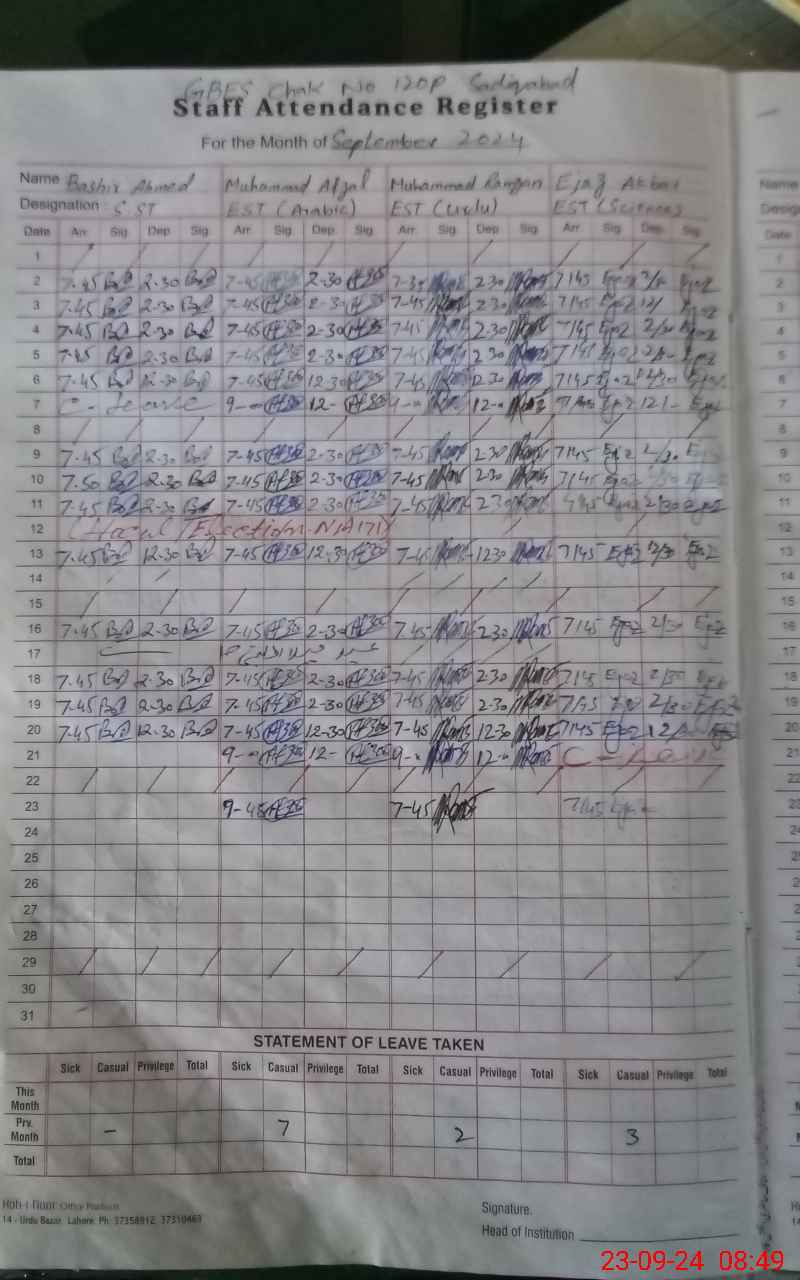 | 31**** | Ba**** Ah**** | SST | Regular | 0 | 0 | 0 | 0 | 0 | 0 | 0 | 0 | 0 | Absent (Un-Authorized) |