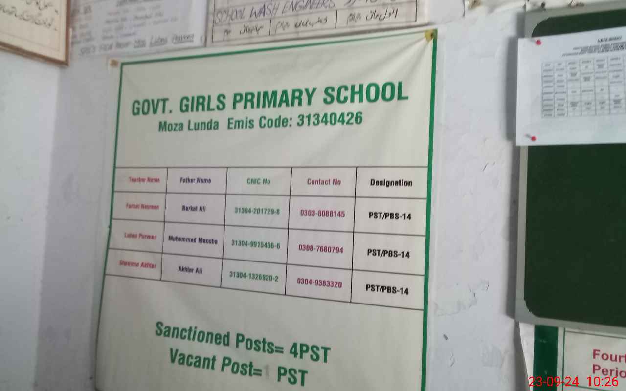 | EMIS Code: 31340426 | Name of School: GGPS MOUZA LUNDA | |||