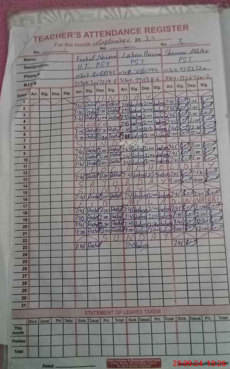 | Name: FA**** NA**** Designation: (School Headmaster's/Headmistress's) PST/PTC/JV Phone/Cell Number: 03**** |