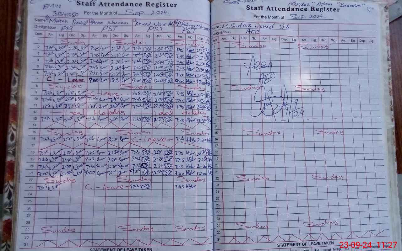 | Attendance Register | Head Teacher | MEA with School | Visit Proof |