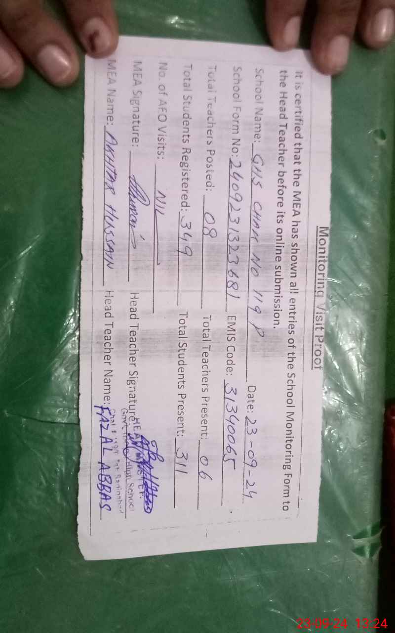 | EMIS Code: 31340065 | Name of School: GHS CHAK NO 119-P | |||
