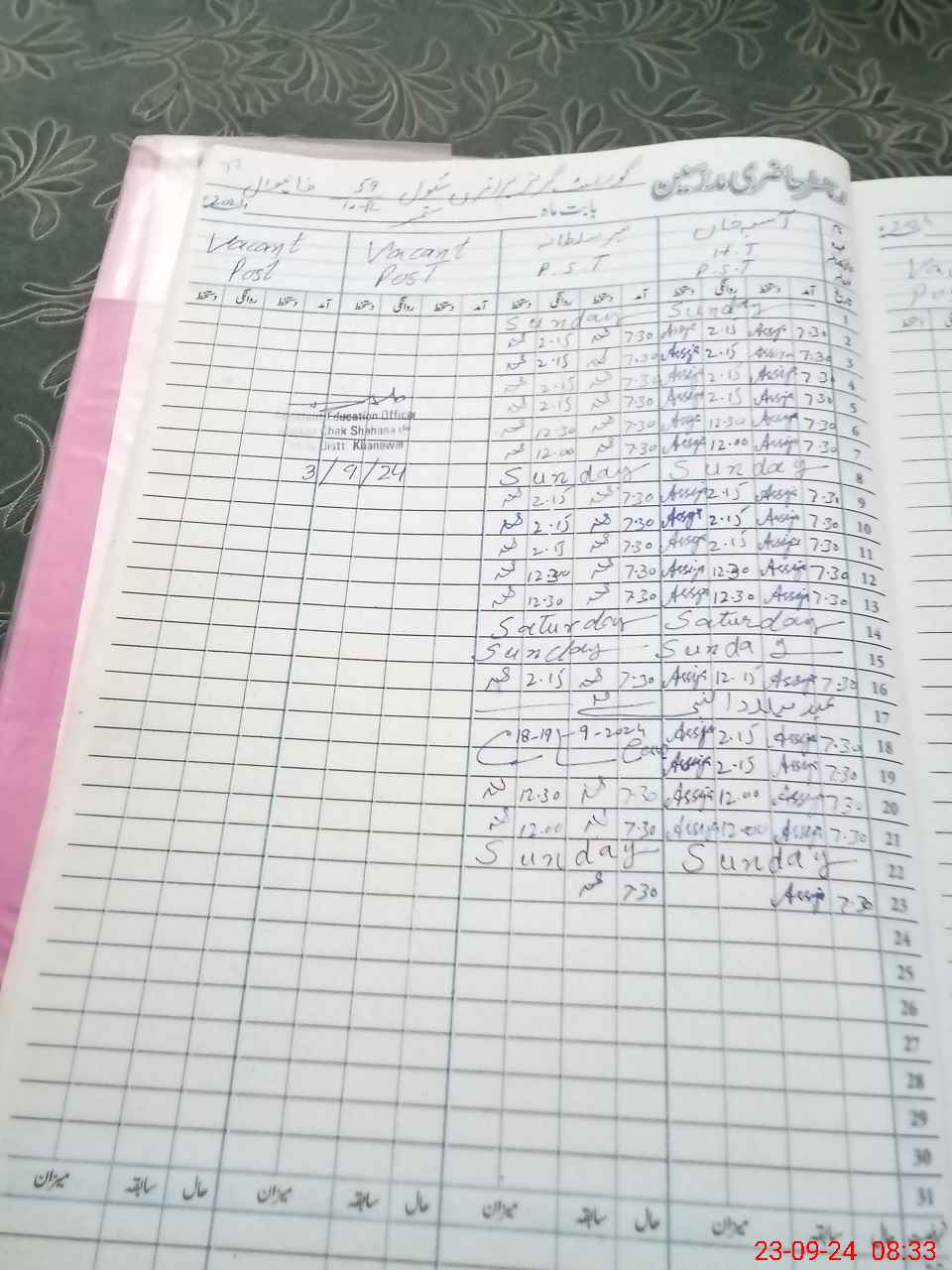 | Name: AS**** KH**** Designation: (School Headmaster's/Headmistress's) PST Phone/Cell Number: 03**** |