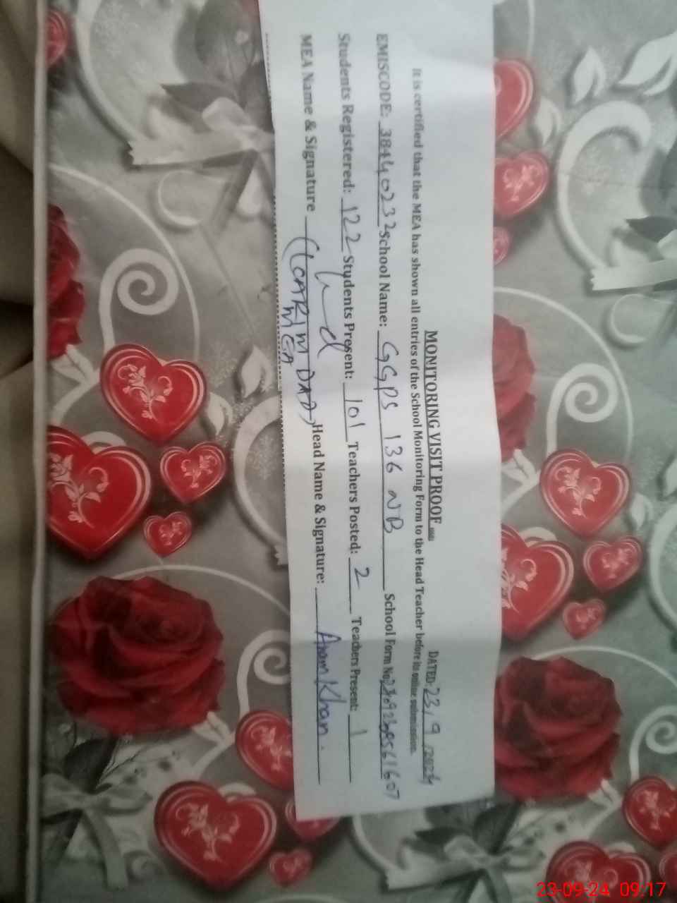 | Attendance Register | Head Teacher | MEA with School | Visit Proof |