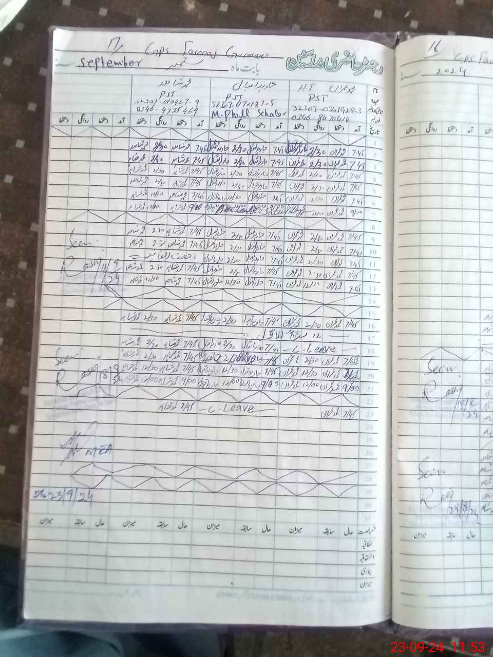 | CNIC | Full Name | Designation | R/C | Absence During Last Calender Month |