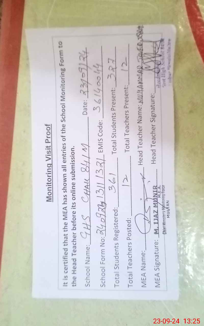 | EMIS Code: 36140044 | Name of School: GHS CHAK 84 / M | |||